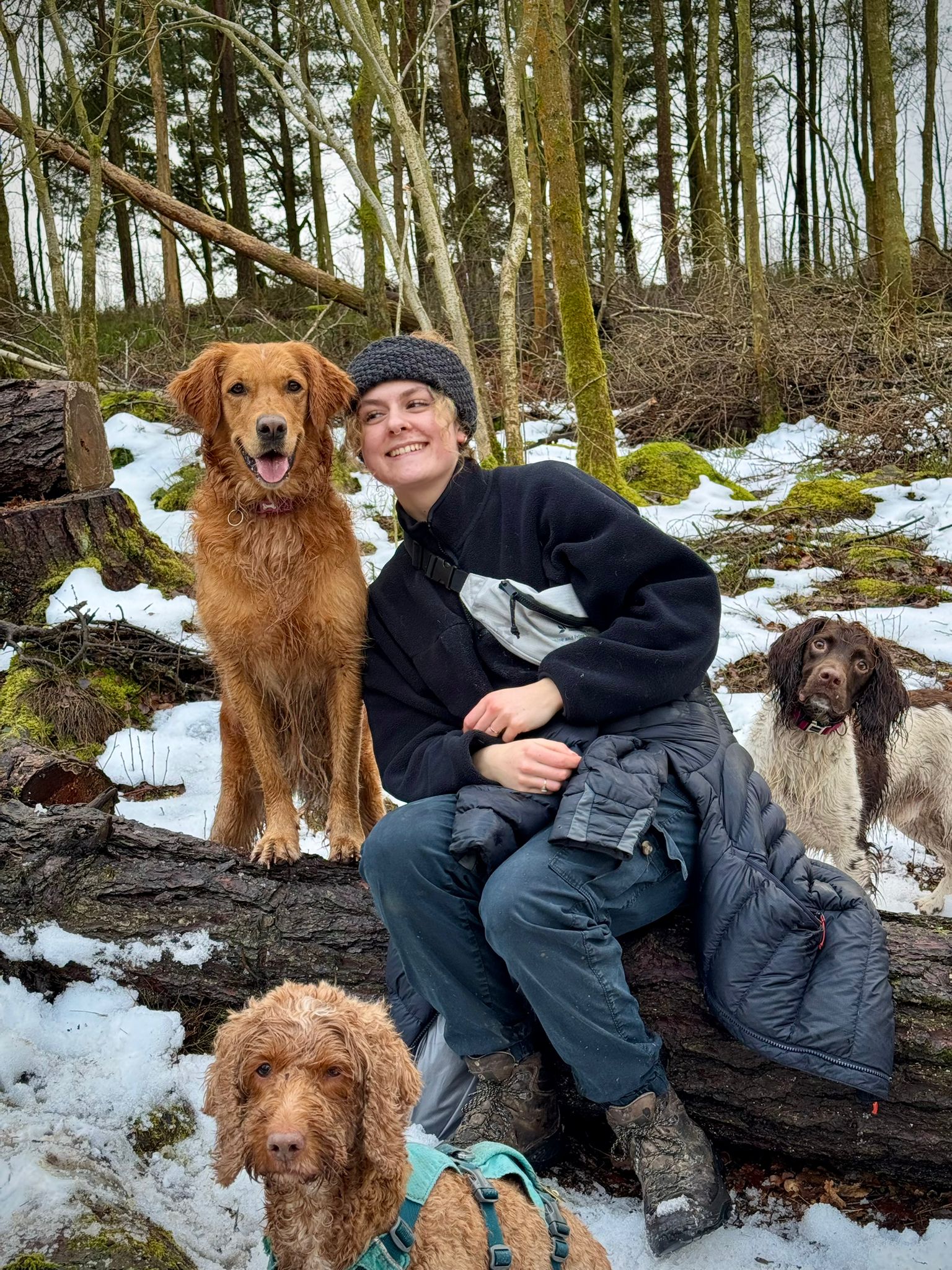 Hi, I'm Izzy! I've just joined the Forest dogs team in 2025. With a degree in Canine and Feline Behaviour and Training, I'm excited to meet all of the lovely dogs! I've got years of experience working with animals, including dog walking, grooming, and kennel work. I'm looking forward to helping set up the new daycare site in Dore. I have two dogs of my own, Jessie and Harry, a Staffy cross and a Border Terrier, who both have a very cheeky personalities and always get away with everything! (Also demands treats!)